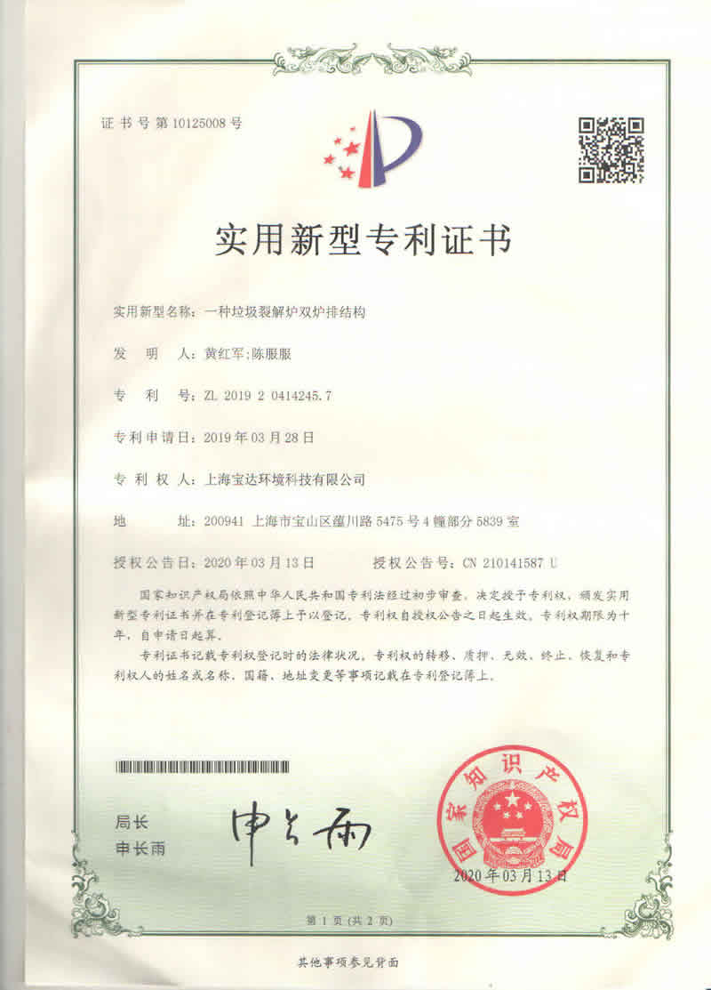 上海寶達環(huán)境科技有限公司源于浙江,是上海寶達集團旗下專業(yè)從事環(huán)保事業(yè)的高新科技企業(yè)。集研發(fā)制造、設備成套、項目咨詢、投資運營及工程總承包為一體的科技型企業(yè),公司專注于城鄉(xiāng)中小型生活垃圾焚燒、醫(yī)療廢物熱解氣化焚燒處理、餐廚垃圾資源化處理,實現(xiàn)固體廢棄物無害化、減量化、資源化。目前已獲得及正在申請的國家專利有 30 余項。是《垃圾裂化焚燒爐裝置》GB/T35251-2017 國家標準制定者。自主研發(fā)的“小型爐排爐焚燒垃圾技術“”垃圾裂解氣化焚燒技術”填補了國內(nèi)中小規(guī)模垃圾處置的技術空白。